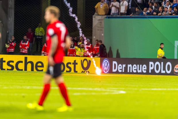 Allerdings war es am Montag beim DFB-Pokalspiel zwischen Drittligist Hansa Rostock und Bundesligist Hertha BSC (0:2) zu eklatanten Vorkommnissen durch das Abbrennen von Pyrotechnik und das Abfeuern von Leuchtkörper in gegnerische Fanlager gekommen.