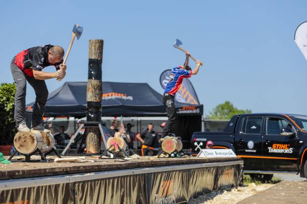 Braun: Zu Anfang war das für mich die Nostalgie des Sports. Dazu kommt, dass mein Vater und mein Großvater bereits in dieser Branche gearbeitet haben. Daher hatte ich da auch immer eine Verbindung dazu. Früher hat man ausschließlich mit Äxten und Zugsägen Bäume gefällt und ich war immer sehr interessiert an den Geschichten, die mir mein Großvater oder mein Vater am Lagerfeuer als kleines Kind erzählt haben. Außerdem habe ich früher Timbersports aus den USA sehr gerne im Fernsehen verfolgt und durch so Typen wie David Bolstad oder Matt Bush habe ich dann selbst Lust auf diesen Sport bekommen.